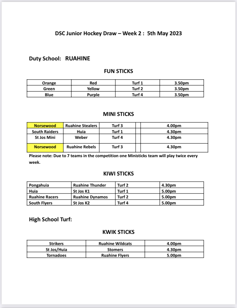 Friday 5 May Hockey Draw