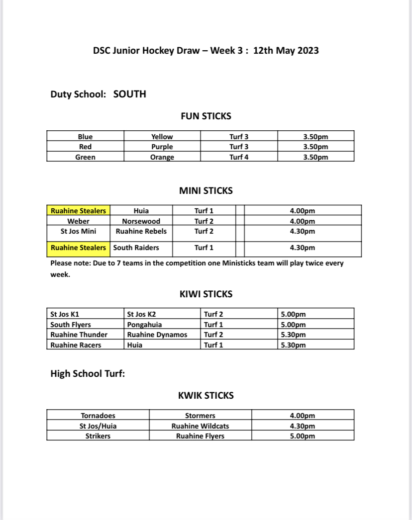 Hockey Draw 12 May 2023