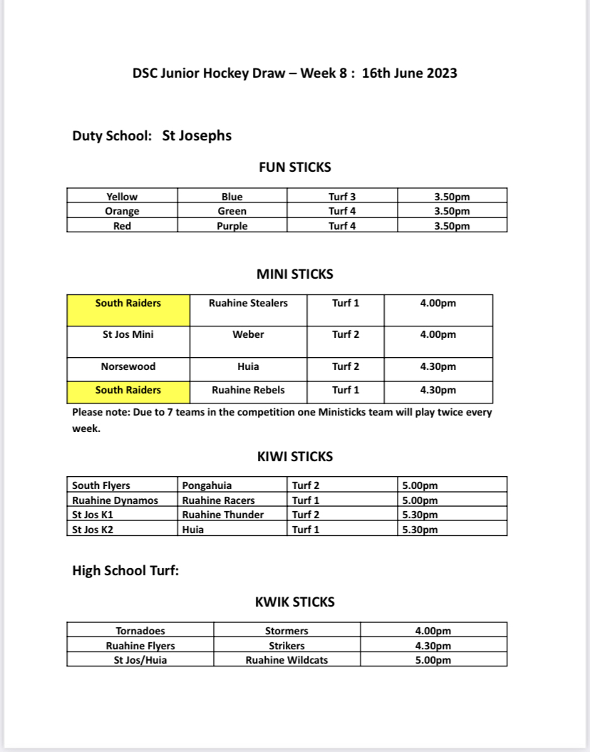 Week 8 Junior Hockey Draw