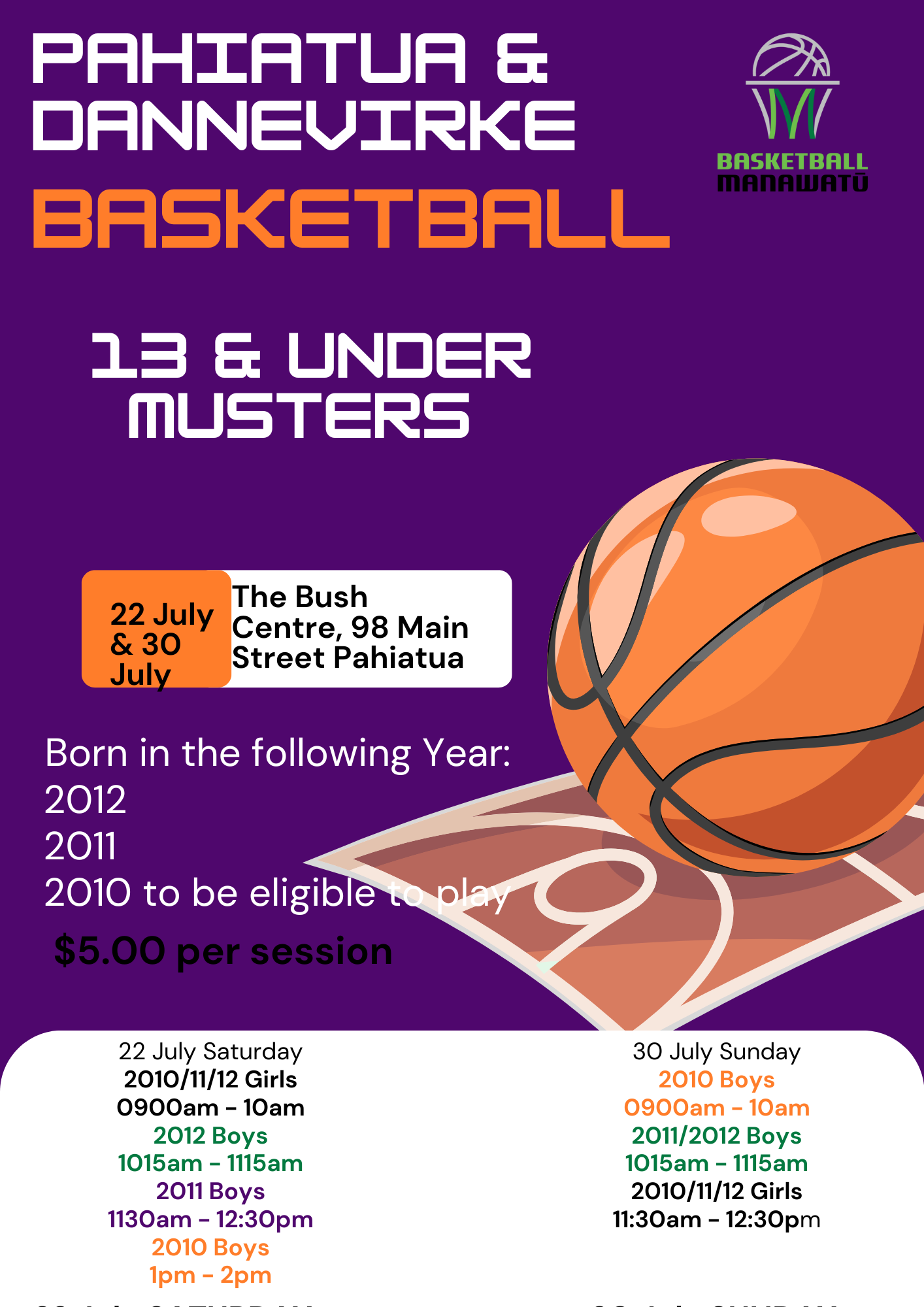 Basketball 13 & Under Representative Registrations Link July 18, 2023July 18, 2023 by https://forms.gle/oLomYMRLsyPScaYCA Pahiatua and Dannevirke 13 Musters.png